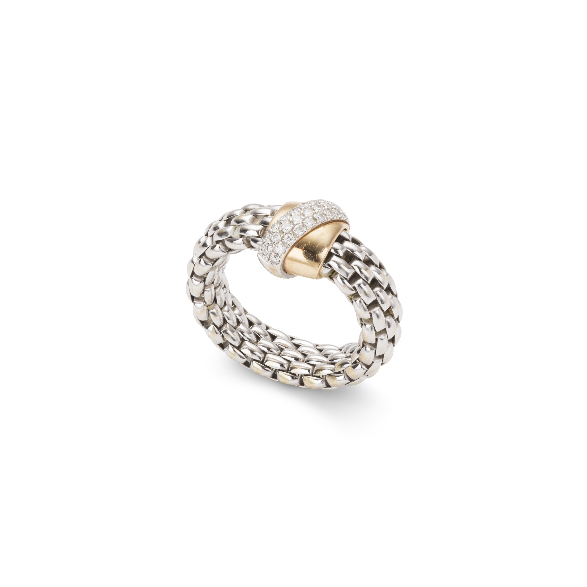 of woven flexible design with pavé-set diamond detail, signed, modelled in 18ct gold