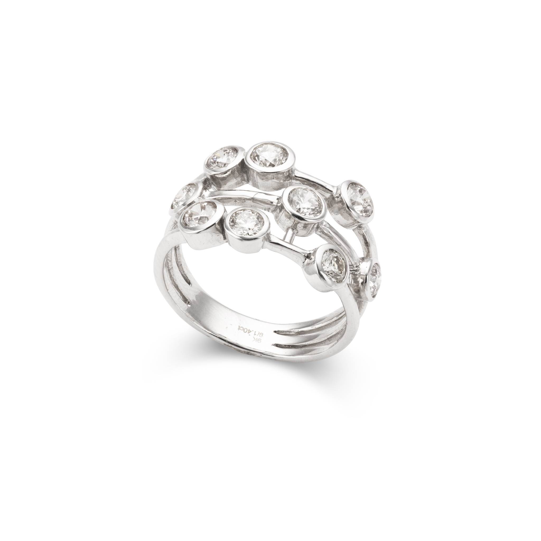 collet-set with nine round brilliant-cut diamonds, stamped 9K