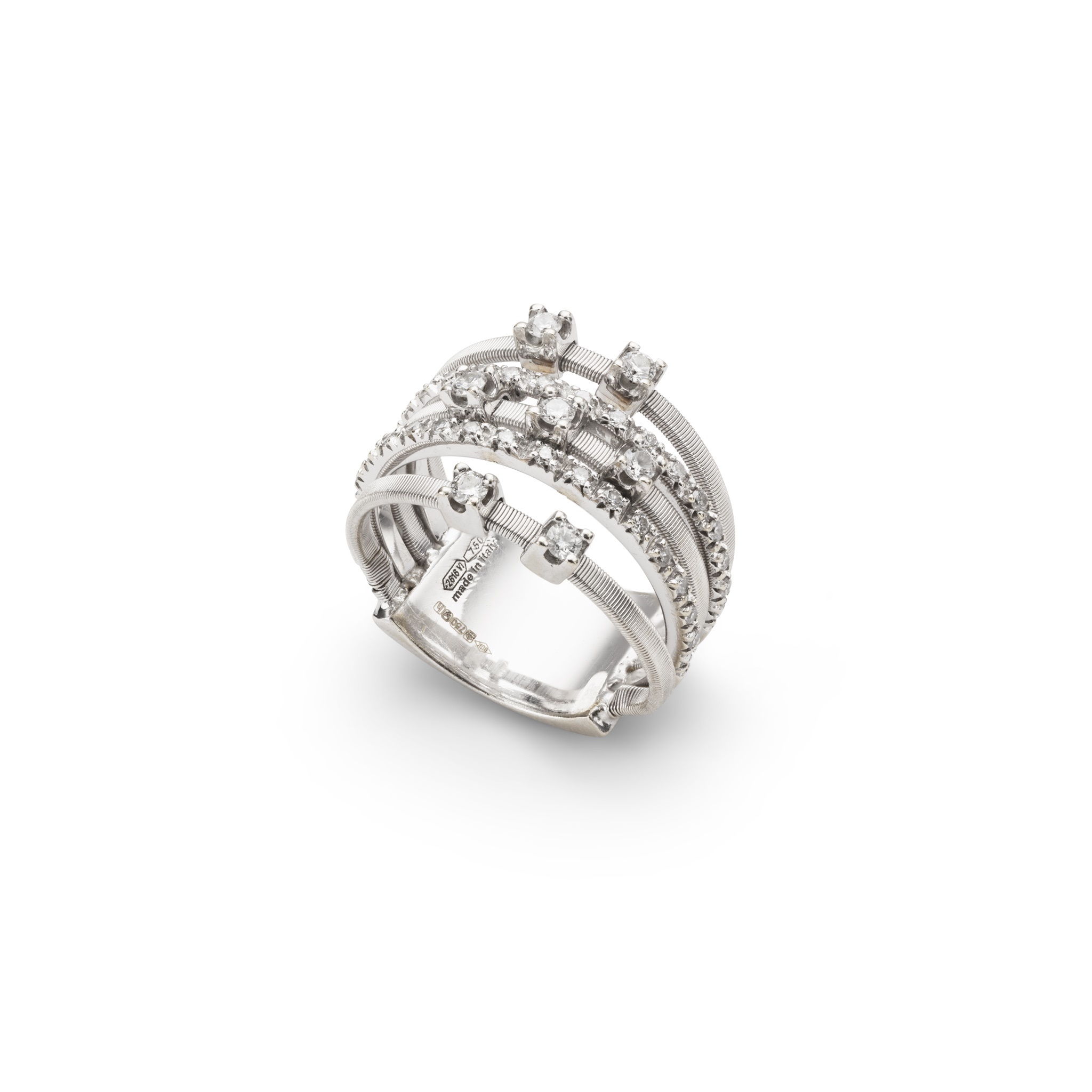 composed of five coiled link bands, set throughout with graduated round brilliant-cut diamonds, signed MARCO BICEGO, modelled in 18ct gold