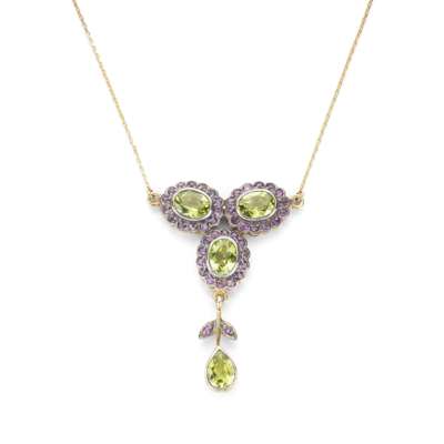 A peridot and amethyst pendant necklace