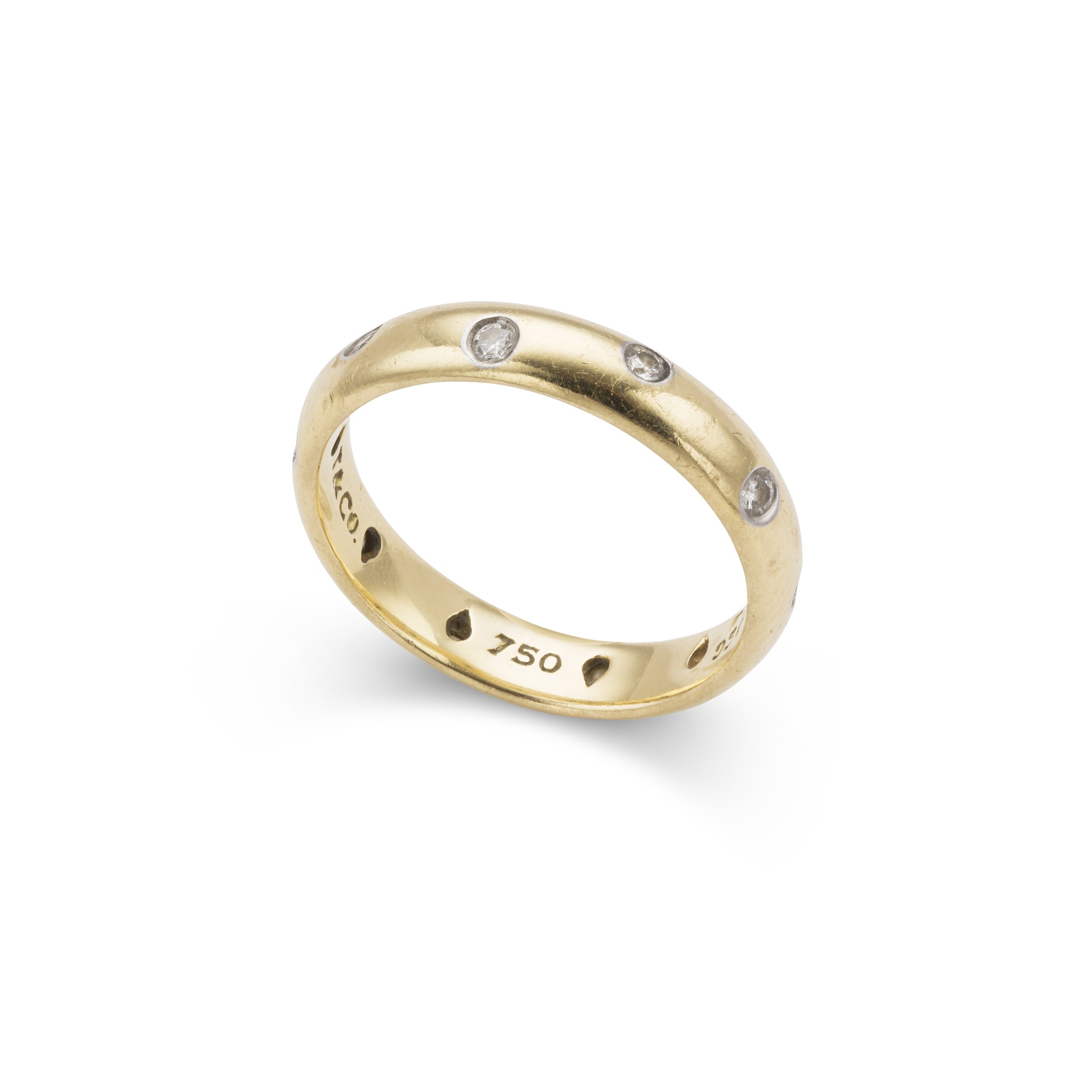 gypsy-set with ten round brilliant-cut diamonds, stamped T&Co 750 PT950; in original black suede box