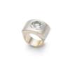 collet-set with a round-cut aquamarine, in a squared matte surround, stamped 750