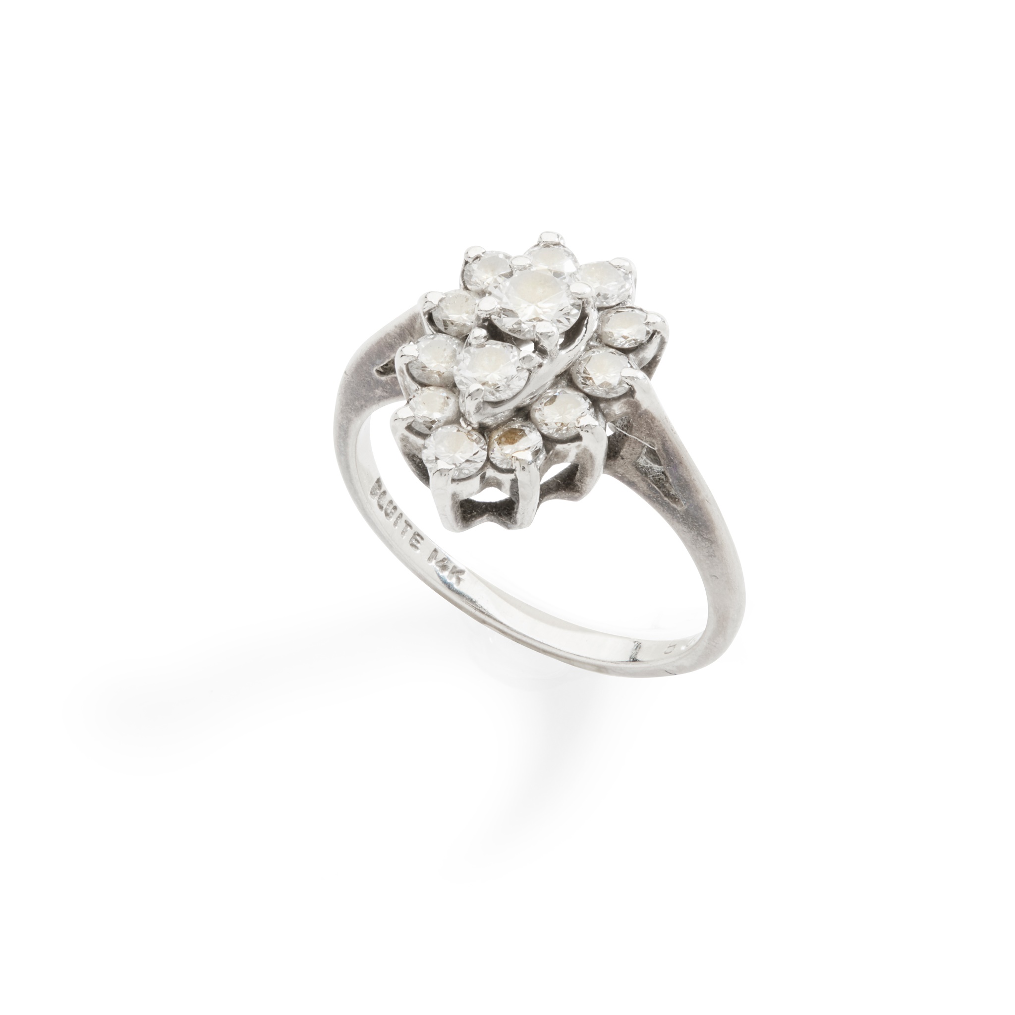 claw-set with graduated round brilliant-cut diamonds, stamped 14k