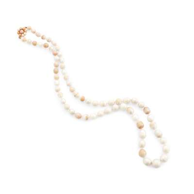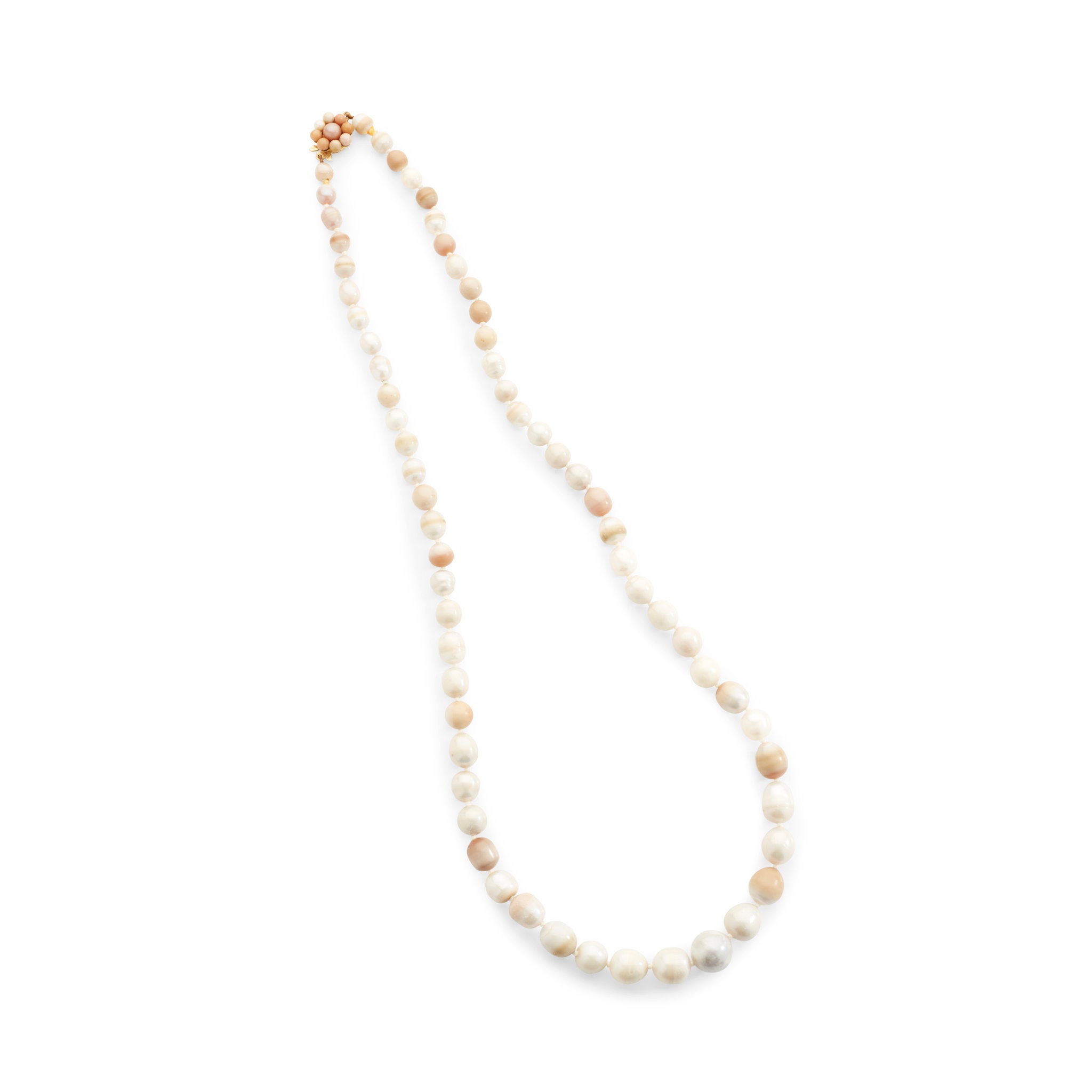composed of a single row of graduated brown to white Scottish freshwater pearls, to a 9ct gold Scottish freshwater pearl clasp
