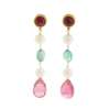 A pair of pink tourmaline, emerald and cultured pearl earrings