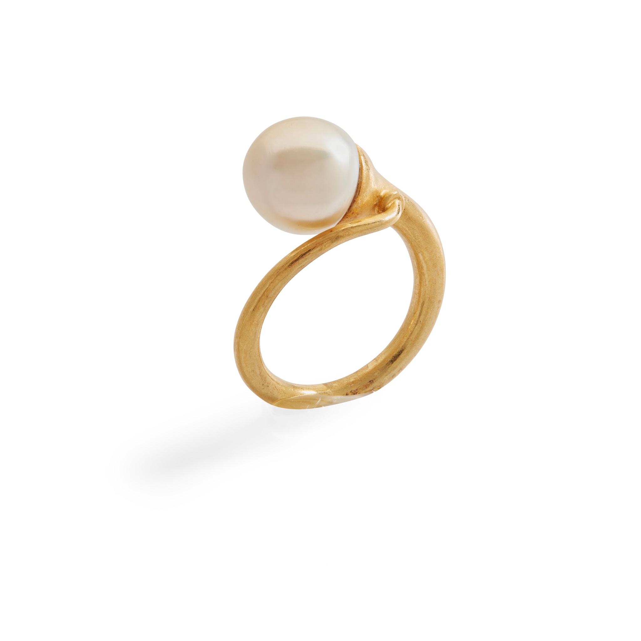 of scrolling design, set with a single cultured pearl, modelled in 22ct gold