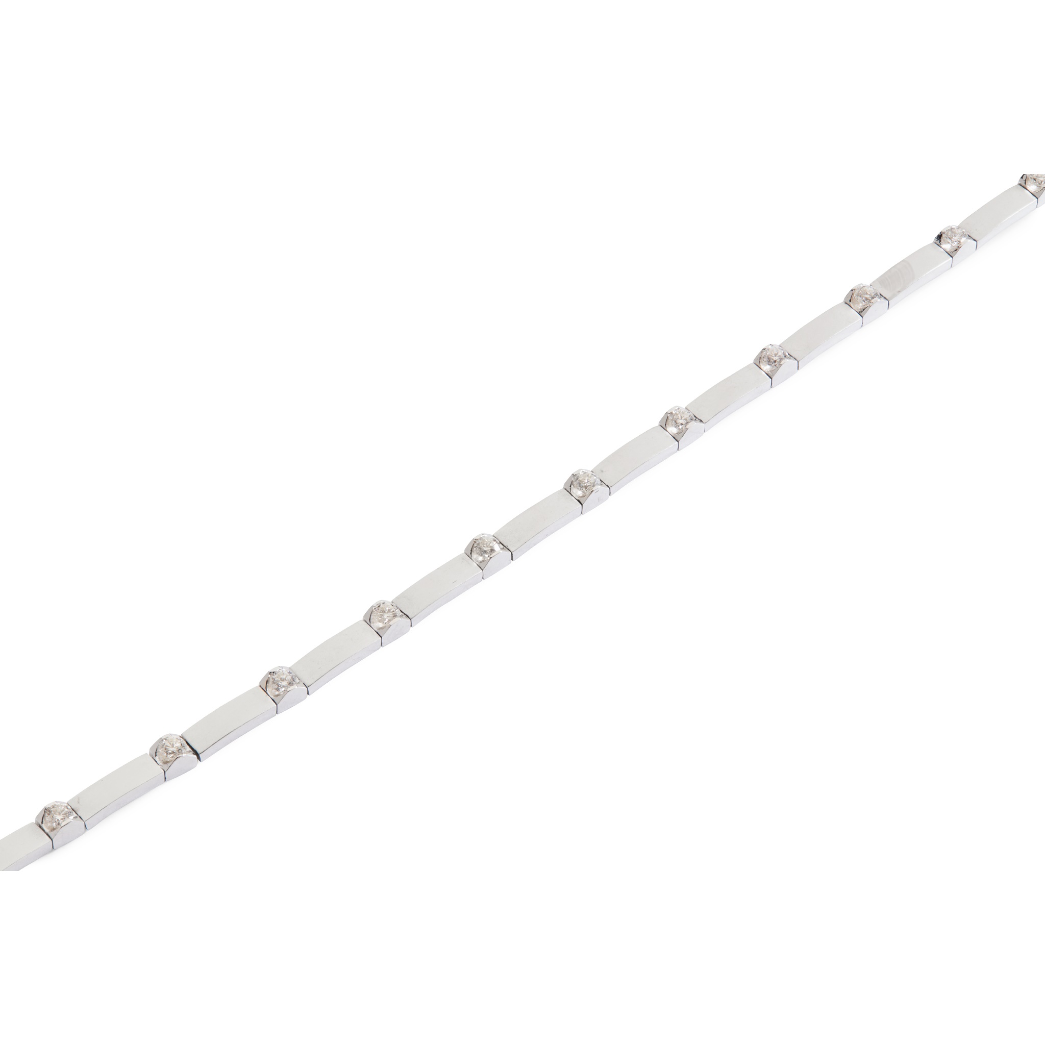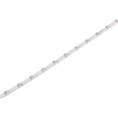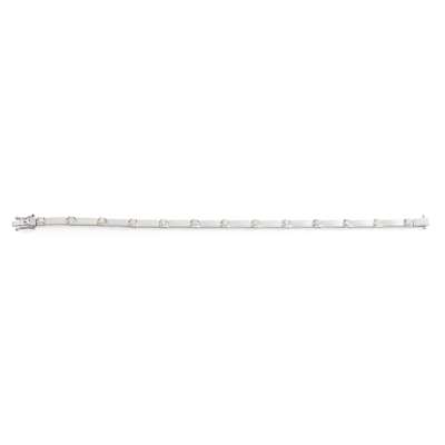 claw-set with thirteen round brilliant-cut diamonds and alternating rectangular links with matt finish, concealed clasp, stamped 750