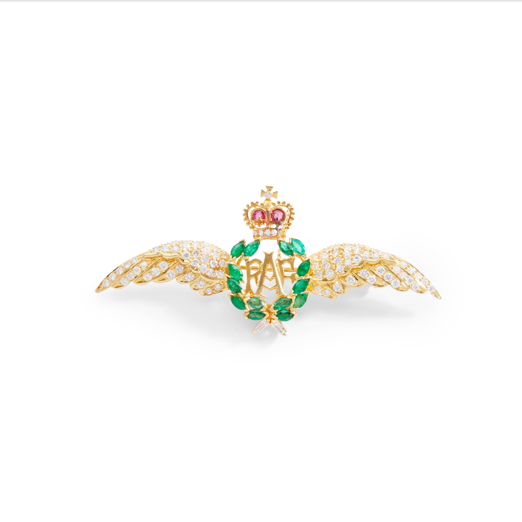set throughout with round brilliant and baguette-cut diamonds, marquise-cut emeralds and round-cut rubies, stamped 750