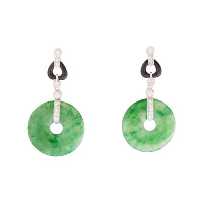 A pair of Jadeite, onyx and pearl earrings