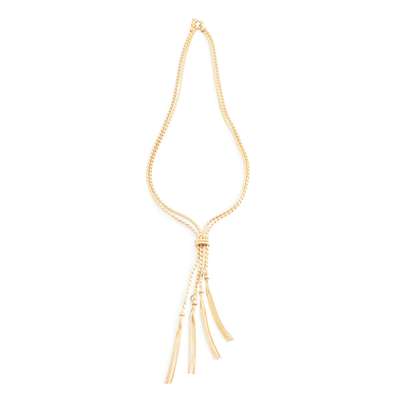 composed of two fancy-link chains ending in four tassel drops, collet-set with two round brilliant-cut diamonds, stamped 18k