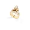 claw-set with a pear-shaped diamond to a scrolling mount, channel-set with two rows of baguette and square step-cut diamonds, stamped 750