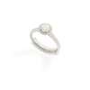 claw-set with a round brilliant-cut diamond in a border of round brilliant-cut diamonds, the shoulders similarly set, modelled in platinum