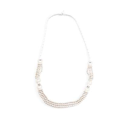 composed of three rows of collet-set round brilliant-cut diamonds and circular links set with round brilliant and baguette-cut diamonds, to plain rectangular links, stamped 14K 585