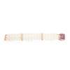 composed of three rows of cultured pearls with diamond-set bar-spacers, the clasp set with a cut-cornered rectangular-cut amethyst and baguette-cut diamonds, stamped 14k