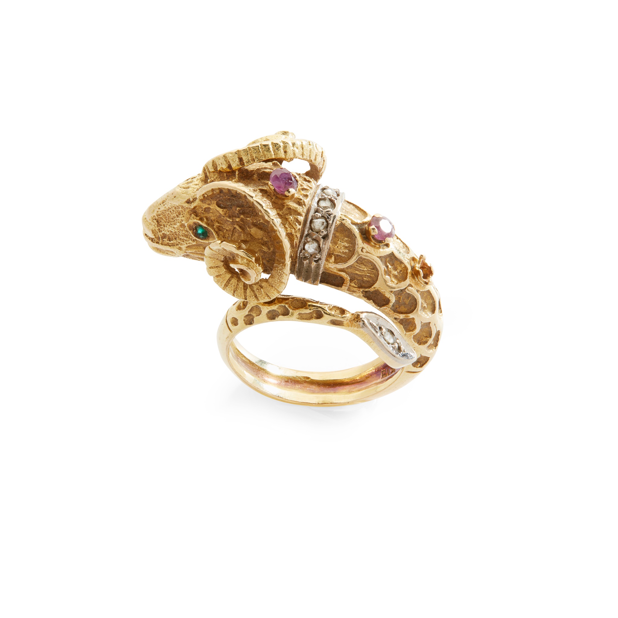 A multi-gem set ram's head ring