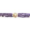 composed of three strands of amethyst beads set at intervals with cultured pearls, the clasp of pierced design, set with cultured pearls and small eight-cut diamonds, stamped 14k 585