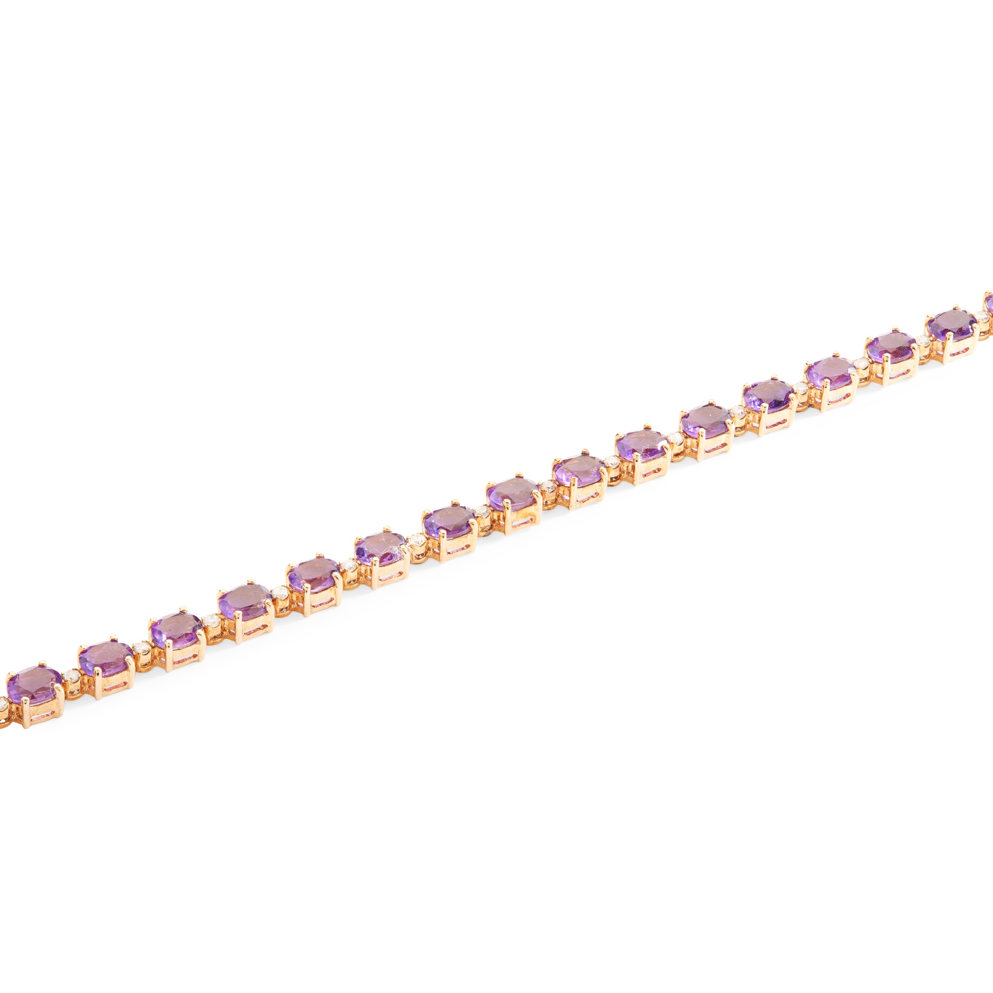 composed of alternating oval-cut amethysts and round brilliant-cut diamonds, stamped 9k