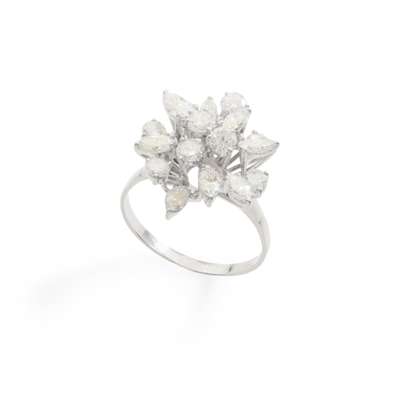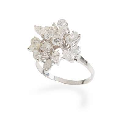 claw-set with various marquise and round brilliant-cut diamonds, stamped 18ct