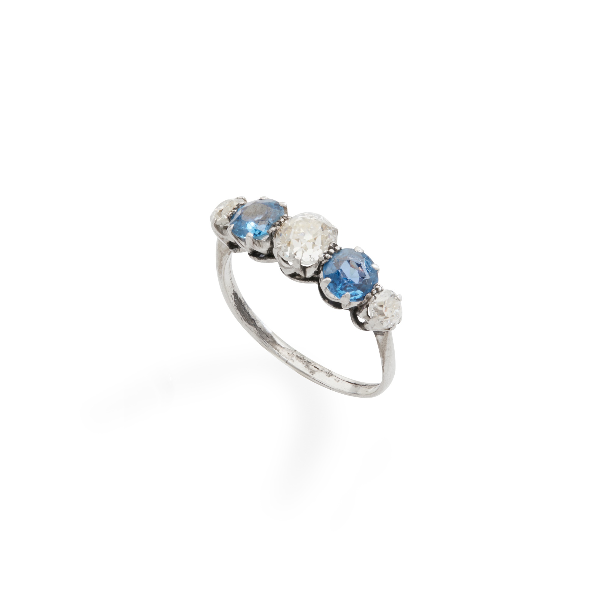 claw-set with three old round-cut diamonds and two round-cut sapphires, unmarked
