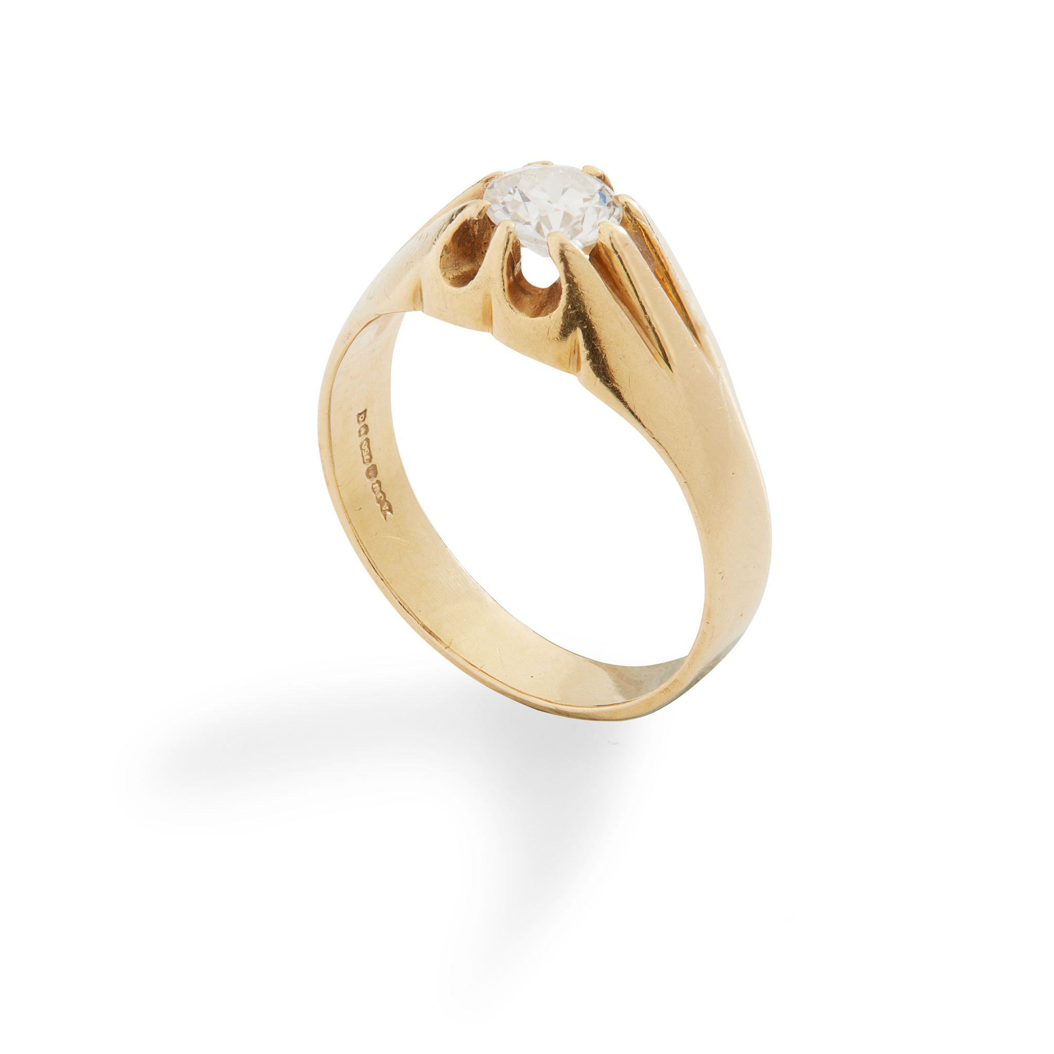 claw-set with an old round-cut diamond, mounted in 18ct gold