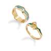 the first of scalloped design, with blue/green enamel detail; the second also of scalloped design, collet-set with two round brilliant-cut diamonds and green enamel detail, both modelled in 18ct gold