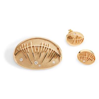A diamond 'Skyran She' brooch and matching earrings, by Sheila Fleet