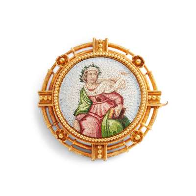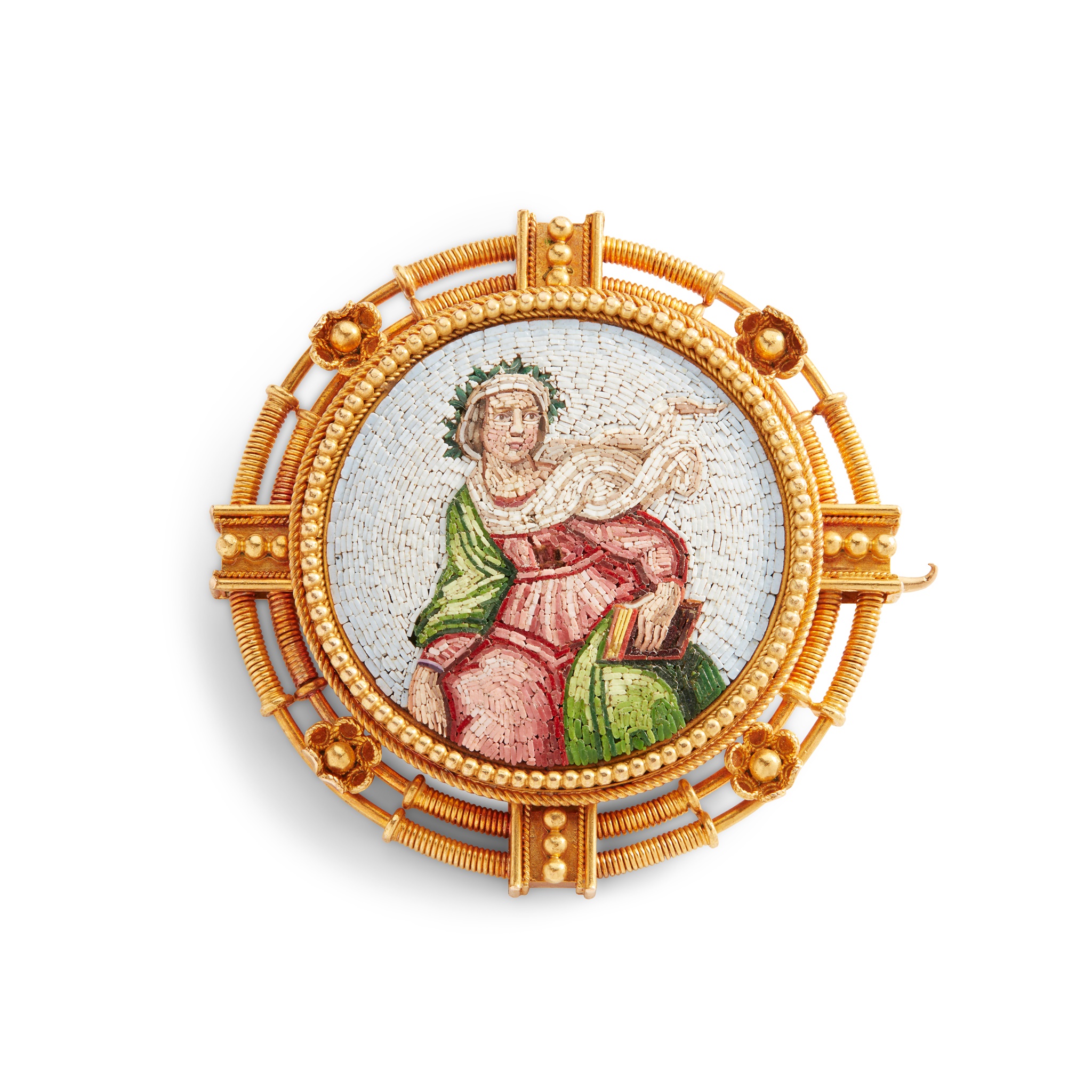 A mid/late 19th-century Etruscan revival micro-mosaic brooch
