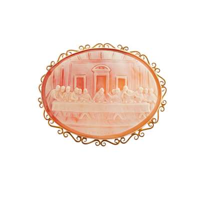 the shell cameo depicting The Last Supper by Leonardo da Vinci, signed Cenacolo, in a 9ct gold mount