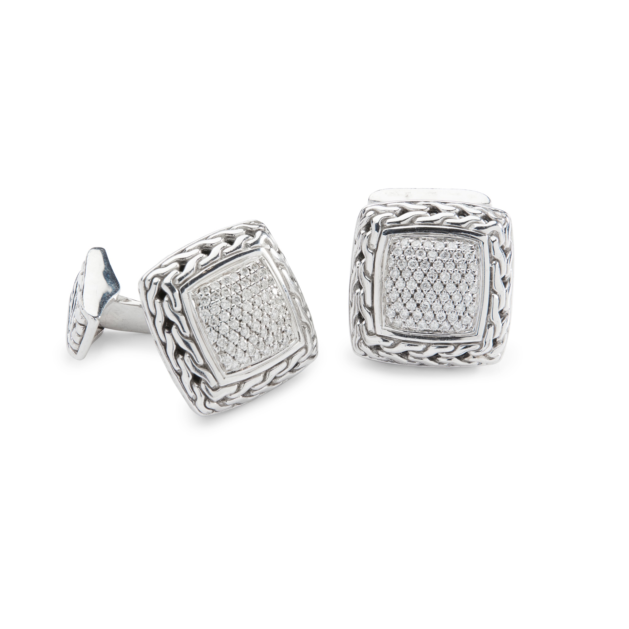each terminal pavé-set with small round brilliant-cut diamonds, in a pierced border, secondary torpedo terminal, stamped 925