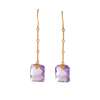 each composed of three bar links, suspending a faceted square amethyst drop, to hook fittings, modelled in 18ct gold