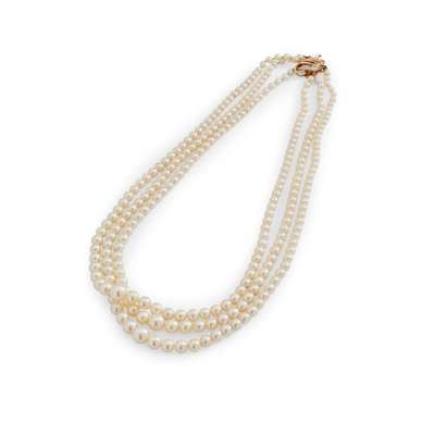 A three-row cultured pearl necklace, by Boucheron