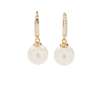 each channel-set with a row of baguette-cut diamonds, suspending a cultured pearl, stamped 750
