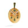 of oval outline, set throughout with square step-cut emeralds, (untested) pearls and rose-cut diamonds, unmarked