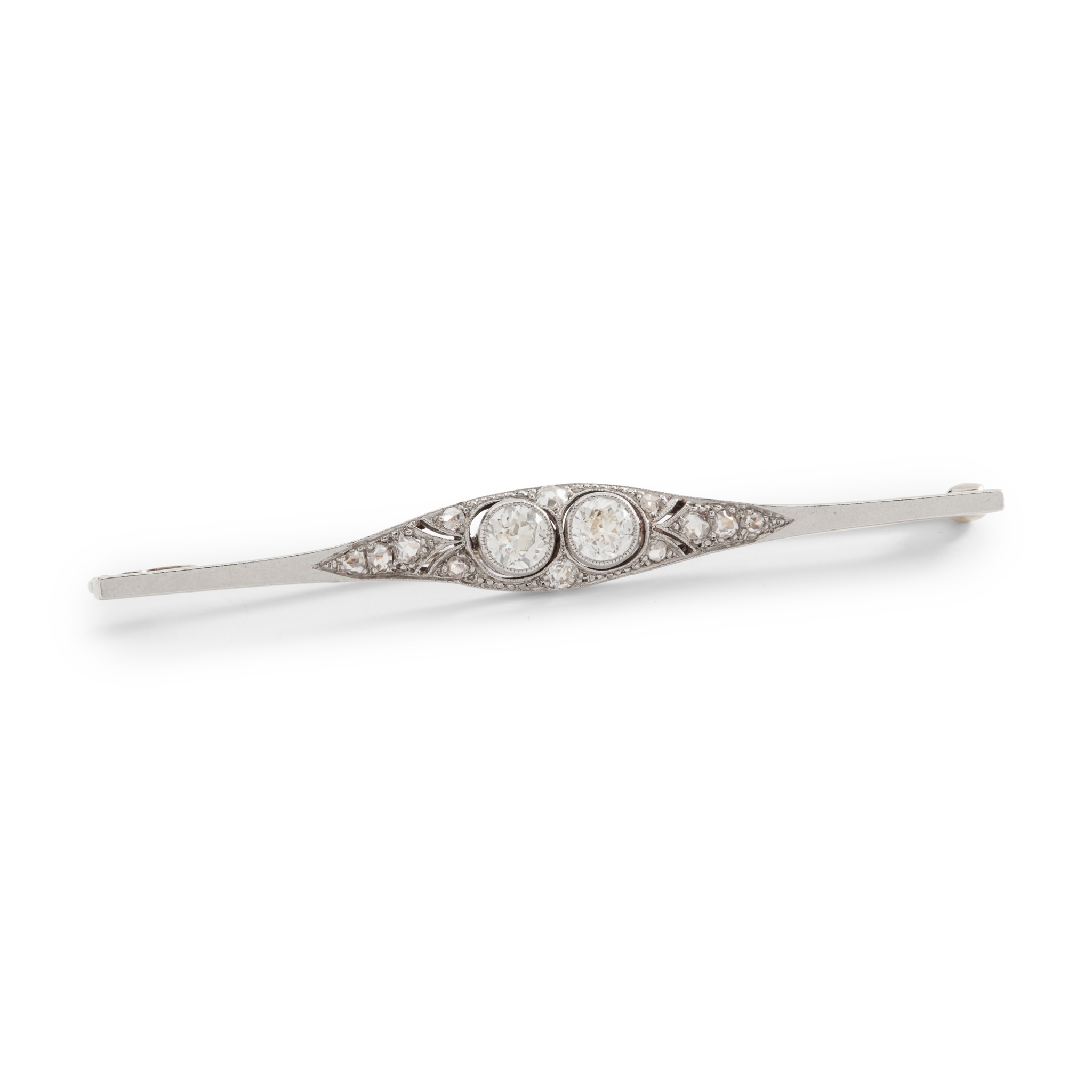 millegrain-set with two round brilliant-cut diamonds, rose-cut diamond detail, unmarked