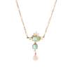 claw-set with two step-cut emeralds in a surround of graduated (untested) pearls, to an integral trace link chain