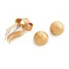 modelled as a stylised bow with brushed finish, set with seven cultured pearls, stamped 585 with Austrian marks; together with a pair of clip earrings, of domed design with satin finish, stamped 750