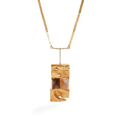 A modernist rock crystal and smokey quartz necklace, by Bjorn Weckstrom for Lapponia