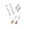each modelled as a hoop, the front set with round brilliant-cut diamonds, with two pairs of detachable drop fittings, one pair set with five round brilliant-cut diamonds each, the second pair each set with a pear-shaped hessonite garnet and a round brilliant-cut diamond, all modelled in 18ct white gold