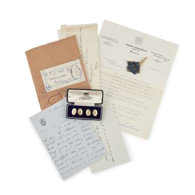 Note: The letters included in this lot detail the interesting history of these cufflinks and the reason why they were given to Mr. Wall.