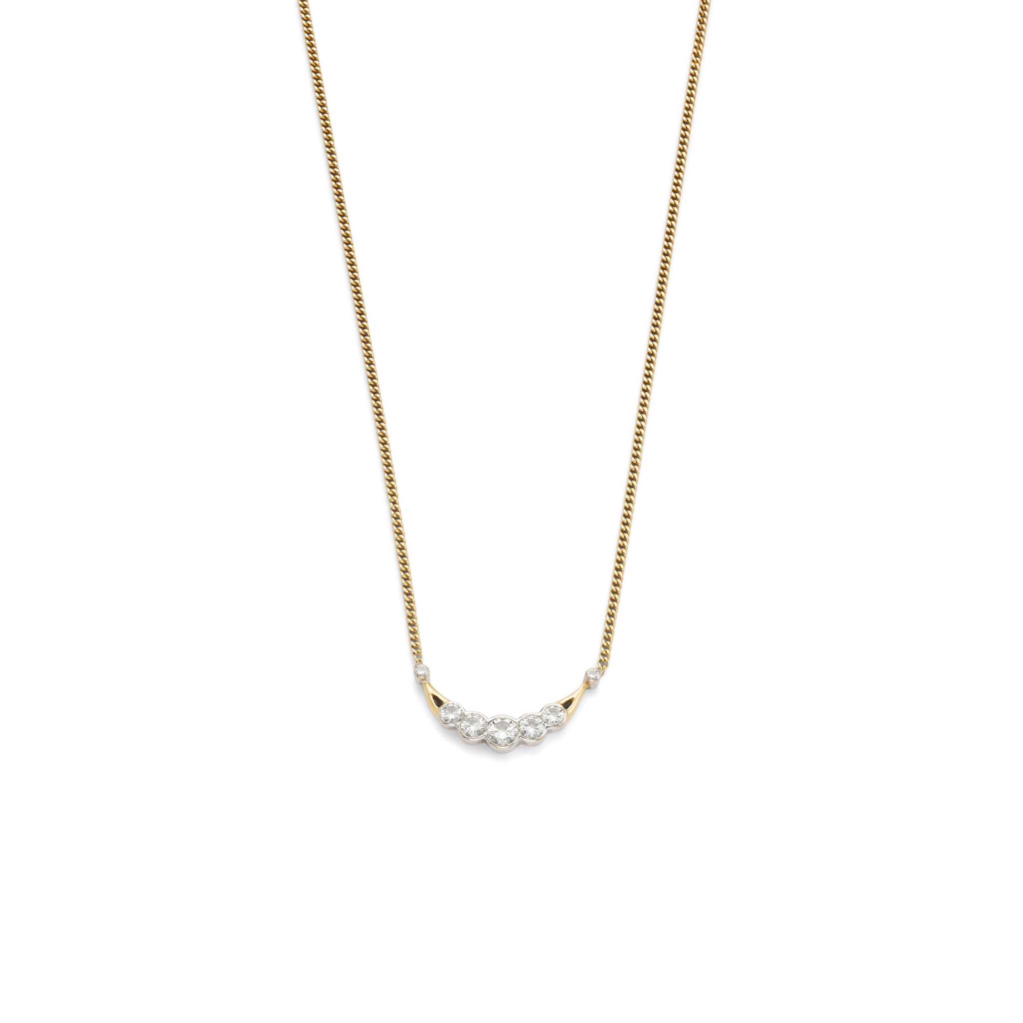 composed of seven collet-set round brilliant-cut diamonds, to an integral trace-link chain, modelled in 18ct gold