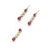 A pair of ruby and diamond earrings and matching pendant