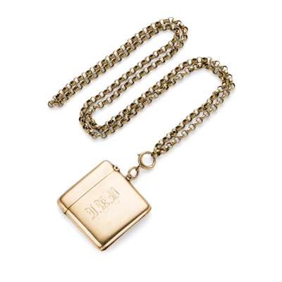 of square outline, with engraved initials J.K.D, suspended from a belcher link chain, unmarked