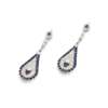 each pear-shaped drop, pavé-set with brilliant-cut diamonds and round and calibré-cut sapphires, post fittings, stamped 750