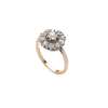 claw-set with an old round-cut diamond in a border of smaller round-cut diamonds (one deficient), stamped 18CT PLAT