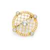 of circular pierced design, set throughout with seed pearls and five millegrain-set round-cut aquamarines, unmarked