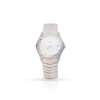 together in original fitted box, originally purchased 2009, comprising a larger Classic Wave model 9187F41, stainless steel case, quartz movement, round white dial with applied Roman numerals, date aperture at 3, screw motifs to the bezel, caseback with model and serial numbers, on an integrated bracelet strap with signed deployant clasp, with swing tag; and one with case marked 18K, quartz movement, round white dial with applied gold Roman numerals, date aperture at 3, gold pencil hands, on an integrated bracelet strap with signed deployant clasp, with two guarantee cards, in box, with outer box