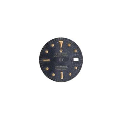 to fit a Rolex GMT-Master, c.1970s, round black form, applied 'nipple' plot and baton hour markers, cut out for date aperture, numbered 563B3 to the reverse