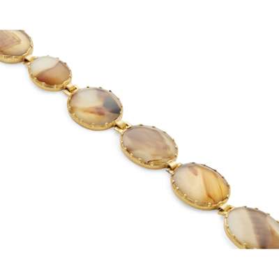 composed of eight links each set with a polished agate, to a concealed clasp, unmarked