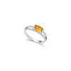 claw-set with a cabochon citrine, the split shoulders set with small round brilliant-cut diamonds, stamped Au750