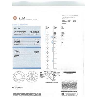 claw-set with a round brilliant-cut diamond, stamped PLATINUM; with accompanying Gemological Institue of America report, numbered 1152482730, dated 11.07.2013, stating that the diamond weighing 1.00cts, is E colour and VS1 clarity, showing no fluorescence